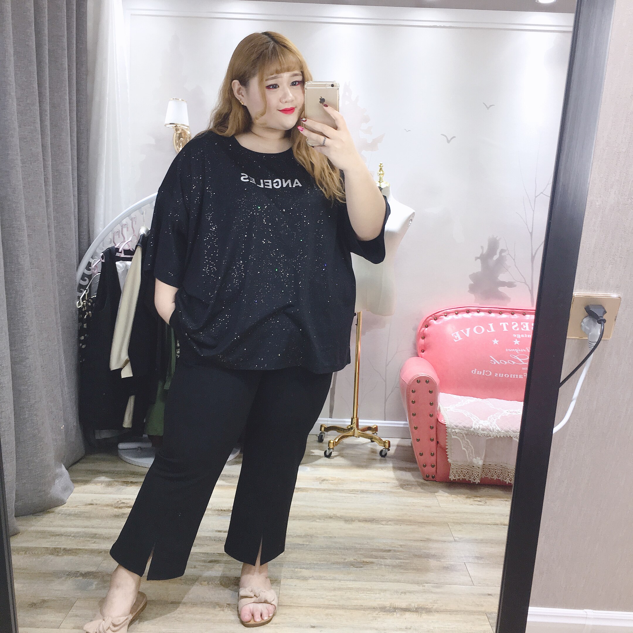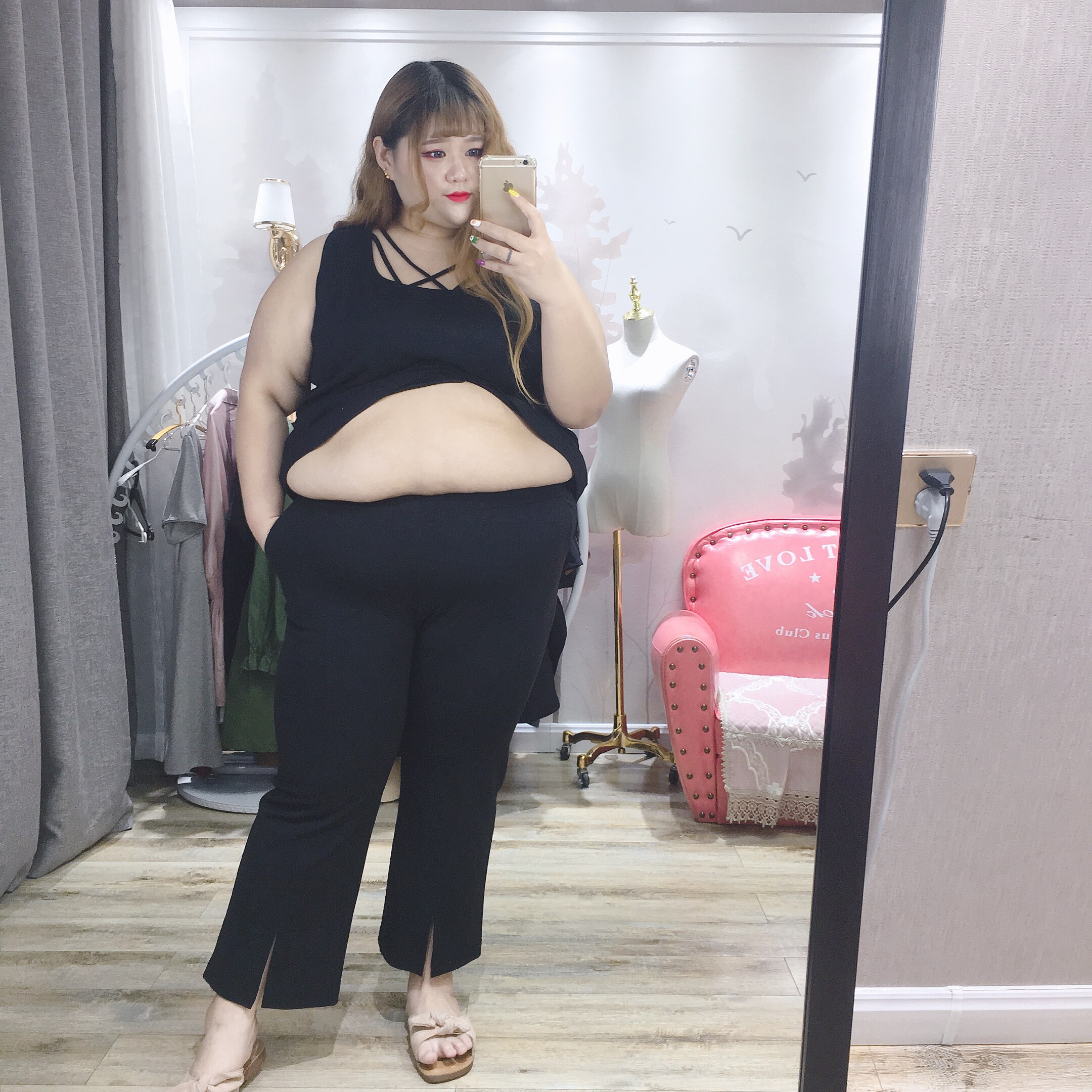 Fat fairy Yingying large size women's autumn clothes fat MM Korean version of the slim fit and thin slits thin and high elastic slender casual pants