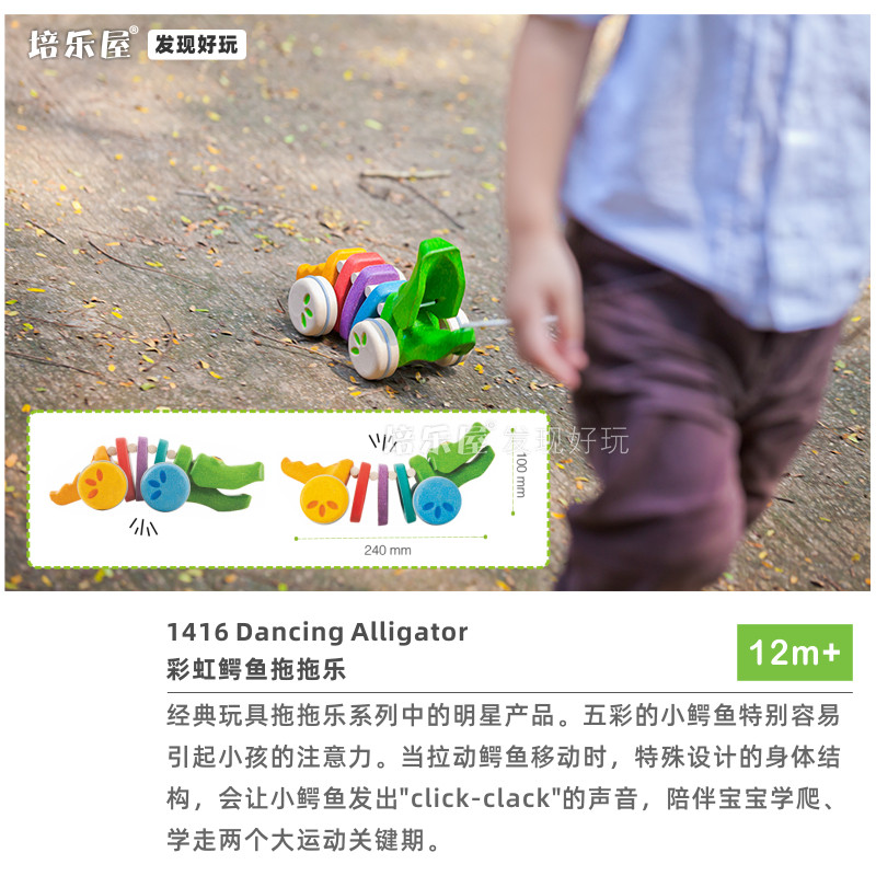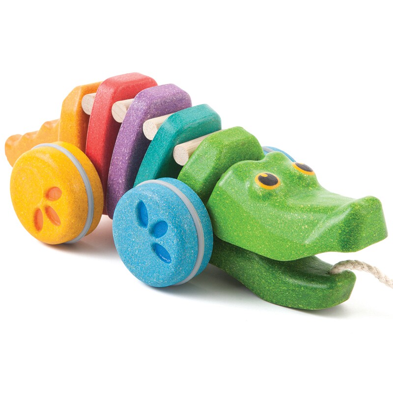 Imported plantoys baby toddler pulls crocodile wooden children's hand-pulled cart pull-wire pull-rope pull toy