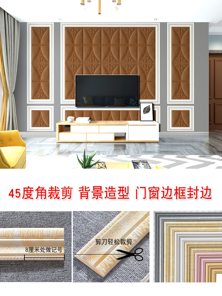 3D Solid Self-Glued Waist Line Wall Sticker Background Wall Border Ceiling Top Corner Wire Wrapping Strip Skirting footrest Decorative Stickers