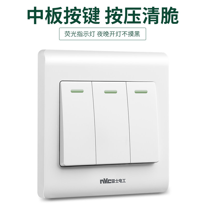 NVC three-open single control switch socket panel type 86 household 3-open 3-position single wall power switch panel D1
