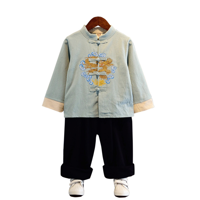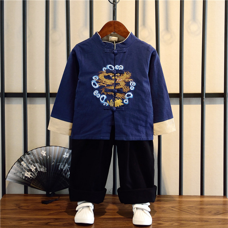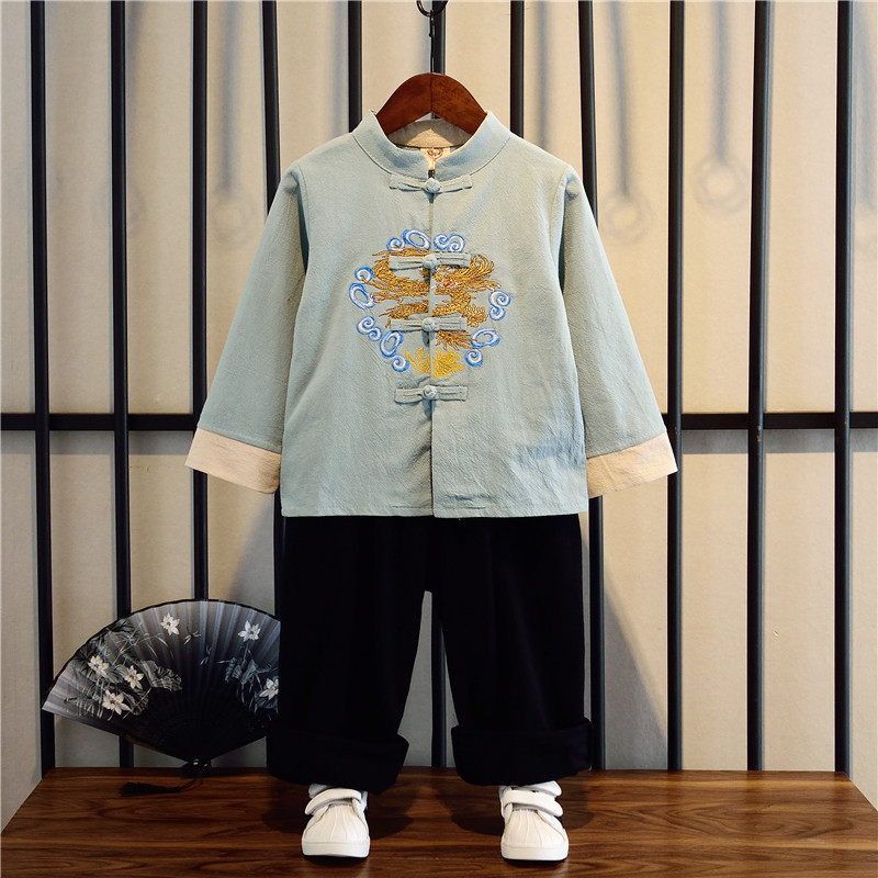 Boys spring Hanfu 2 baby costumes 3 Chinese style children's clothing 4 children's Chinese school uniforms 5 retro long-sleeved cotton and linen suits