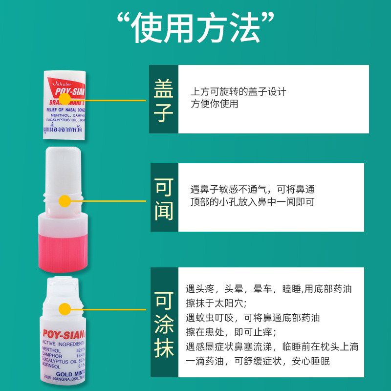 Thai Nose Pass Eight Immortals Tube Poysian Nose Pass Stick Nose Suction Student Refreshing Brain Eight Immortals Nose Artifact Genuine