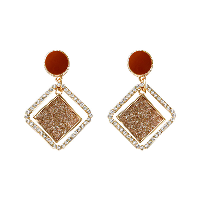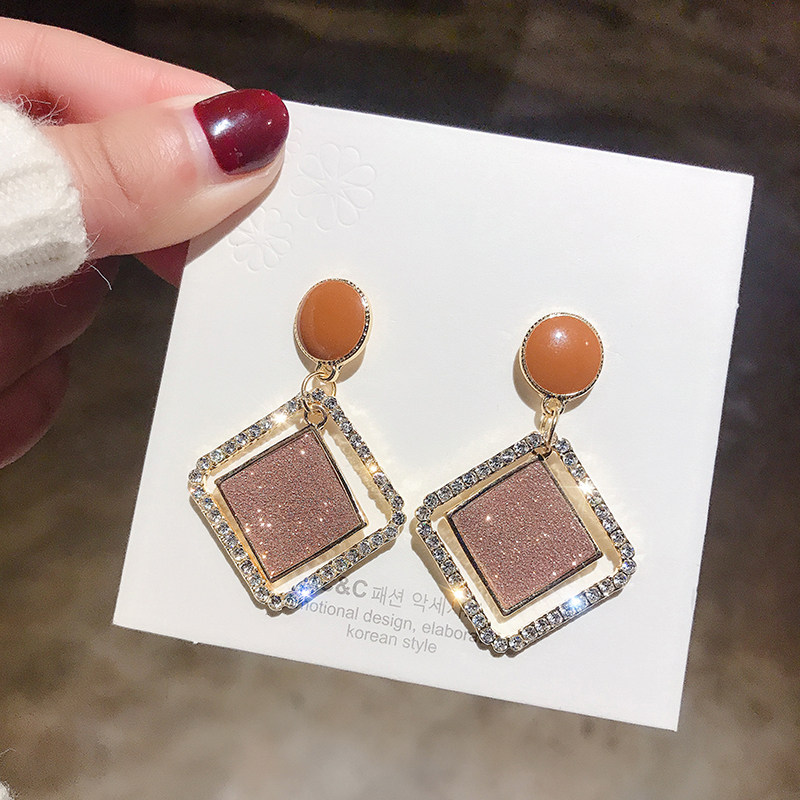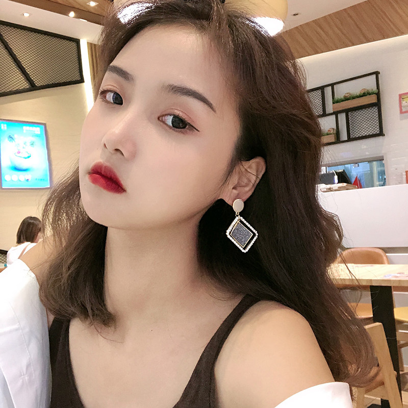 Korean version 925 silver needle temperament long version geometric crystal drop earrings Wild face thin diamond earrings earrings earrings earrings women