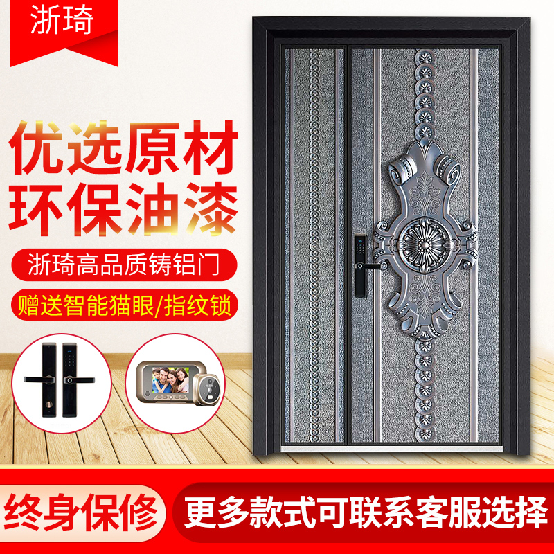 Cast aluminum door explosion-proof door child mother door anti-theft door villa door double switch entry door manufacturer Zhejiang Qi custom entry door