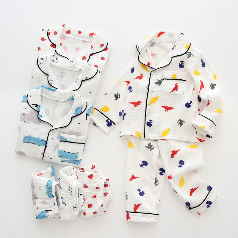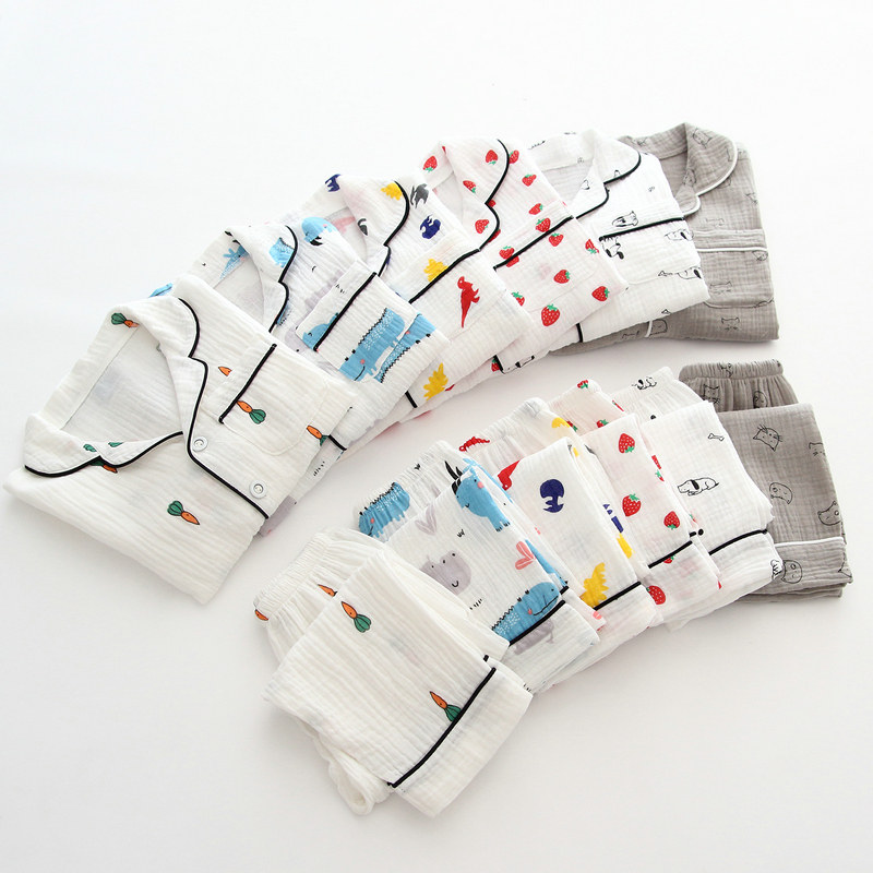 Spring and summer children's pajamas pure cotton yarn long sleeve pants suit boys and girls in the childhood air conditioning sweater home suit