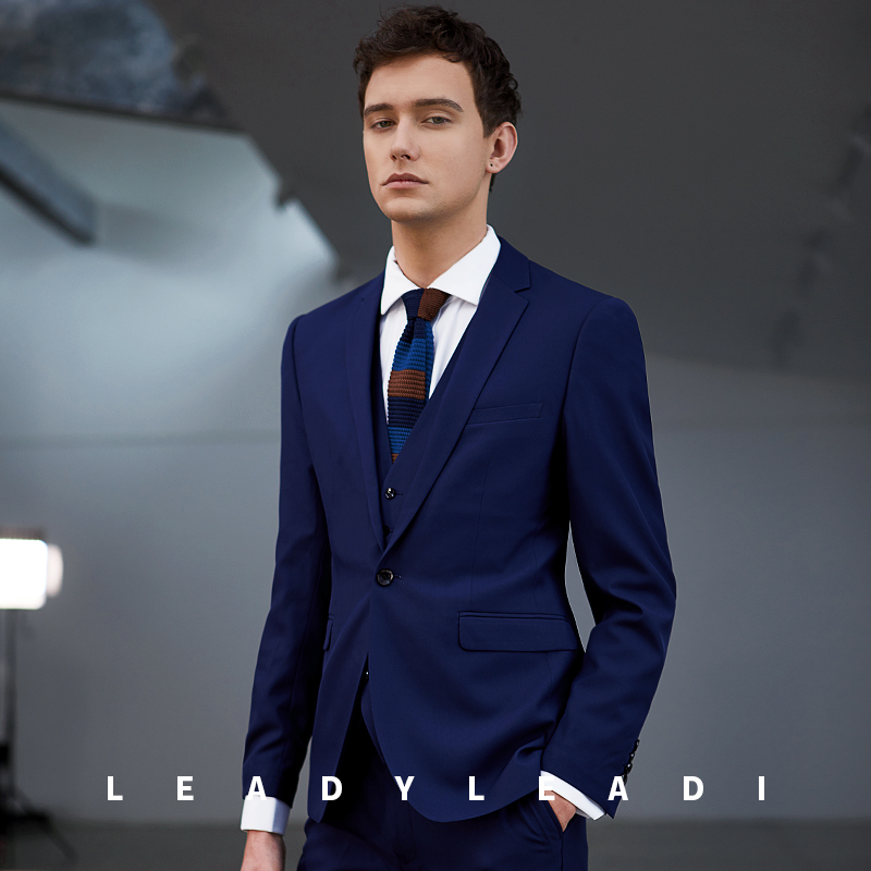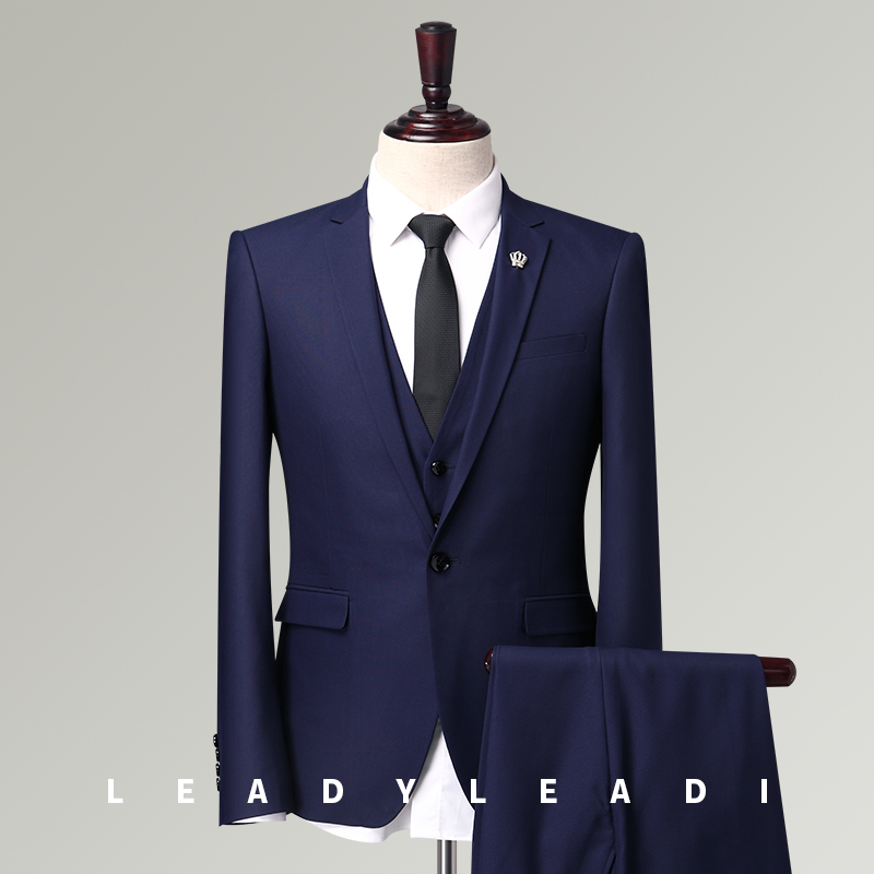 Suit suit men's sashimi version Bao blue groom wedding gown Three sets of business casual career positive dress