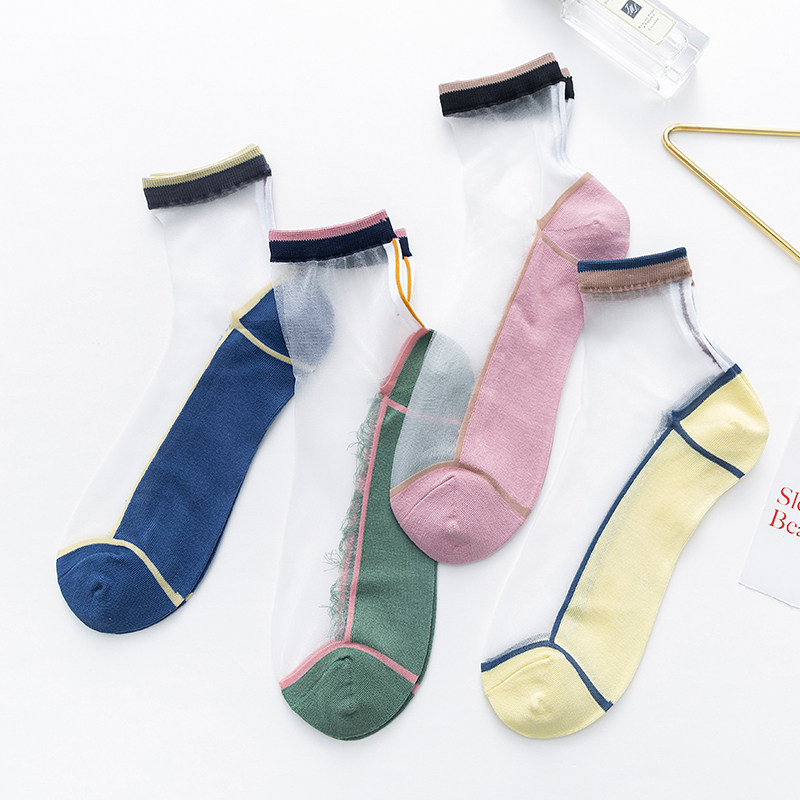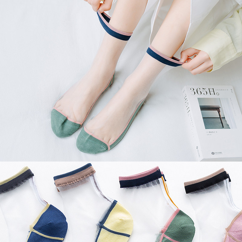 Socks women's middle tube socks stockings thin summer transparent crystal stockings ins tide net red ladies spring and autumn glass silk
