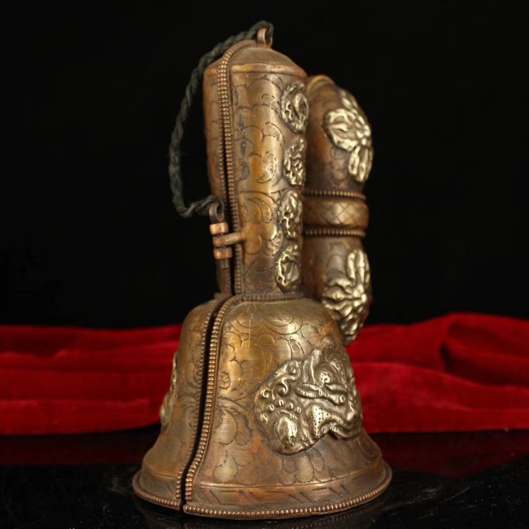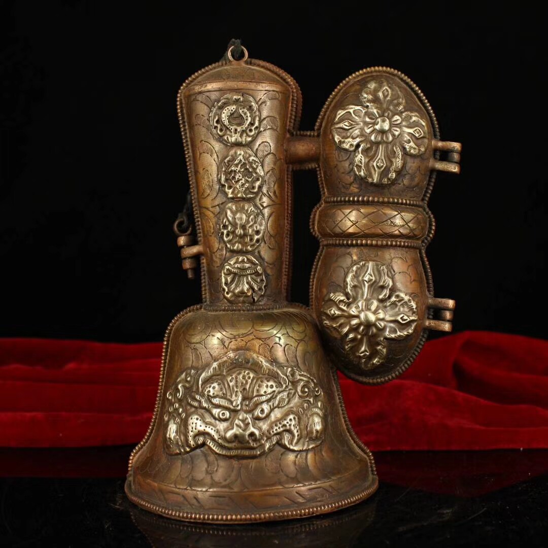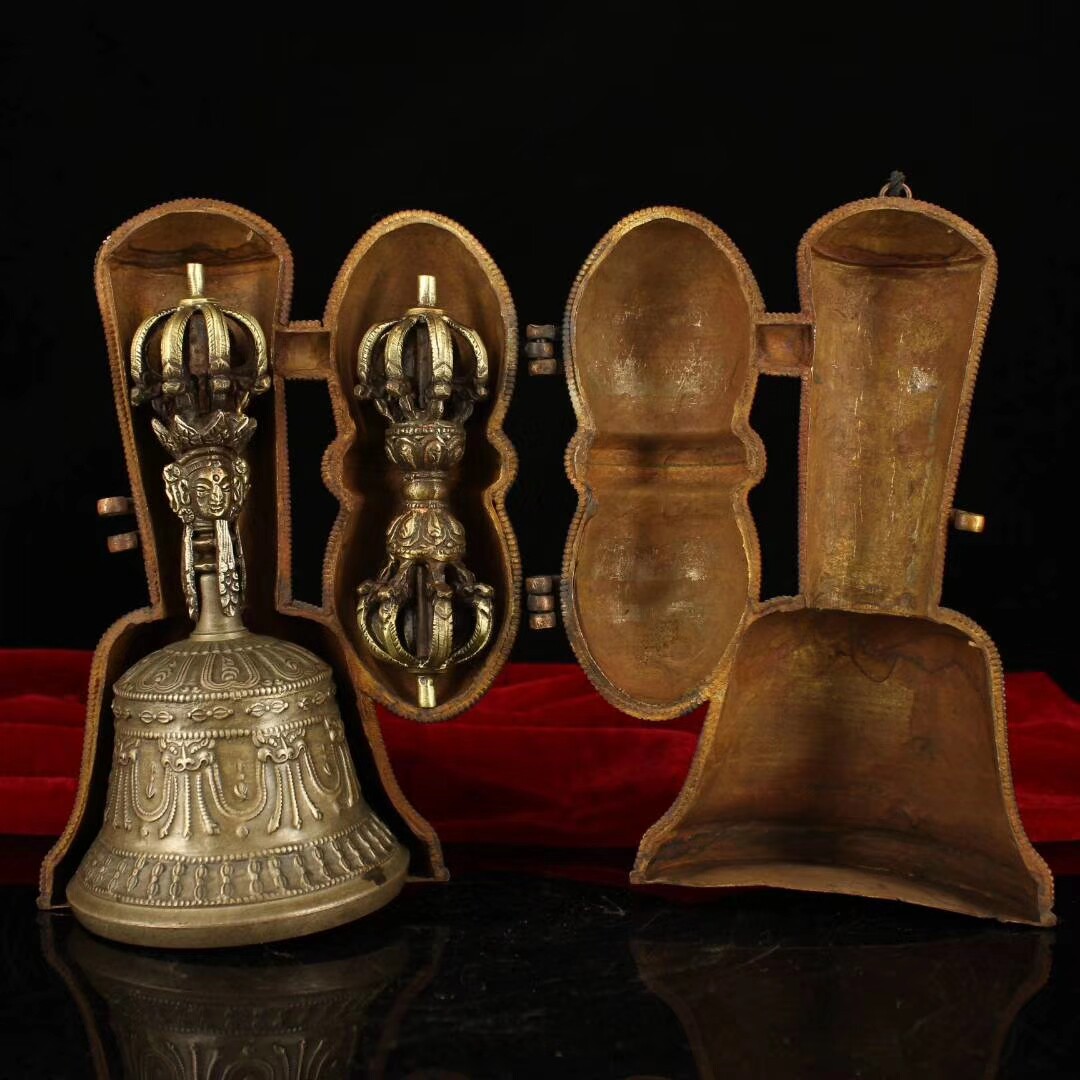 Ancient Arts Xuan Veteran Pure Bronze Buddhist Art Demagoge Demagoge Bells A Set Of Bronze Diamond Bell Pestle Set