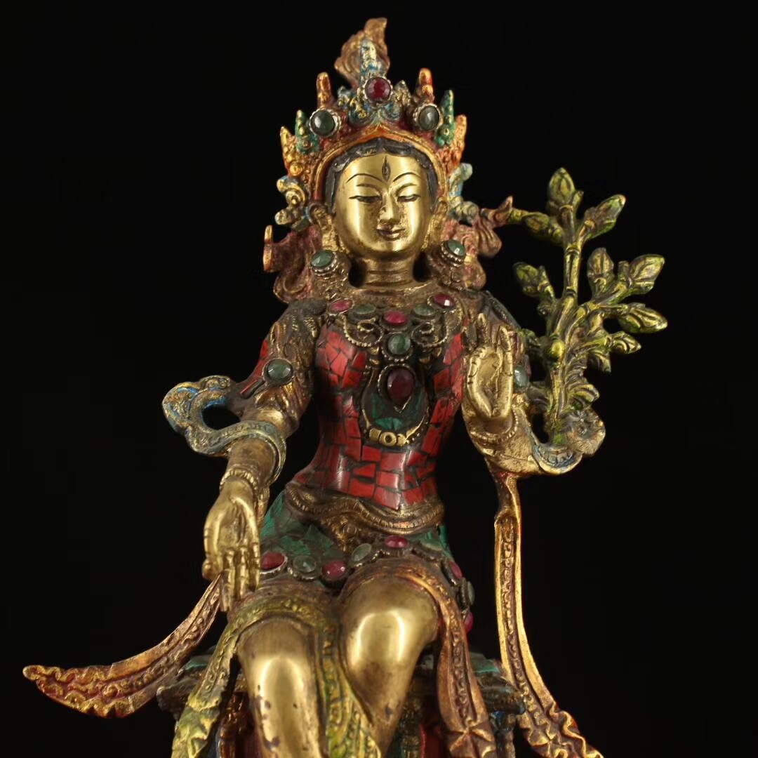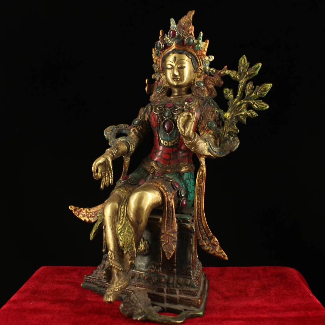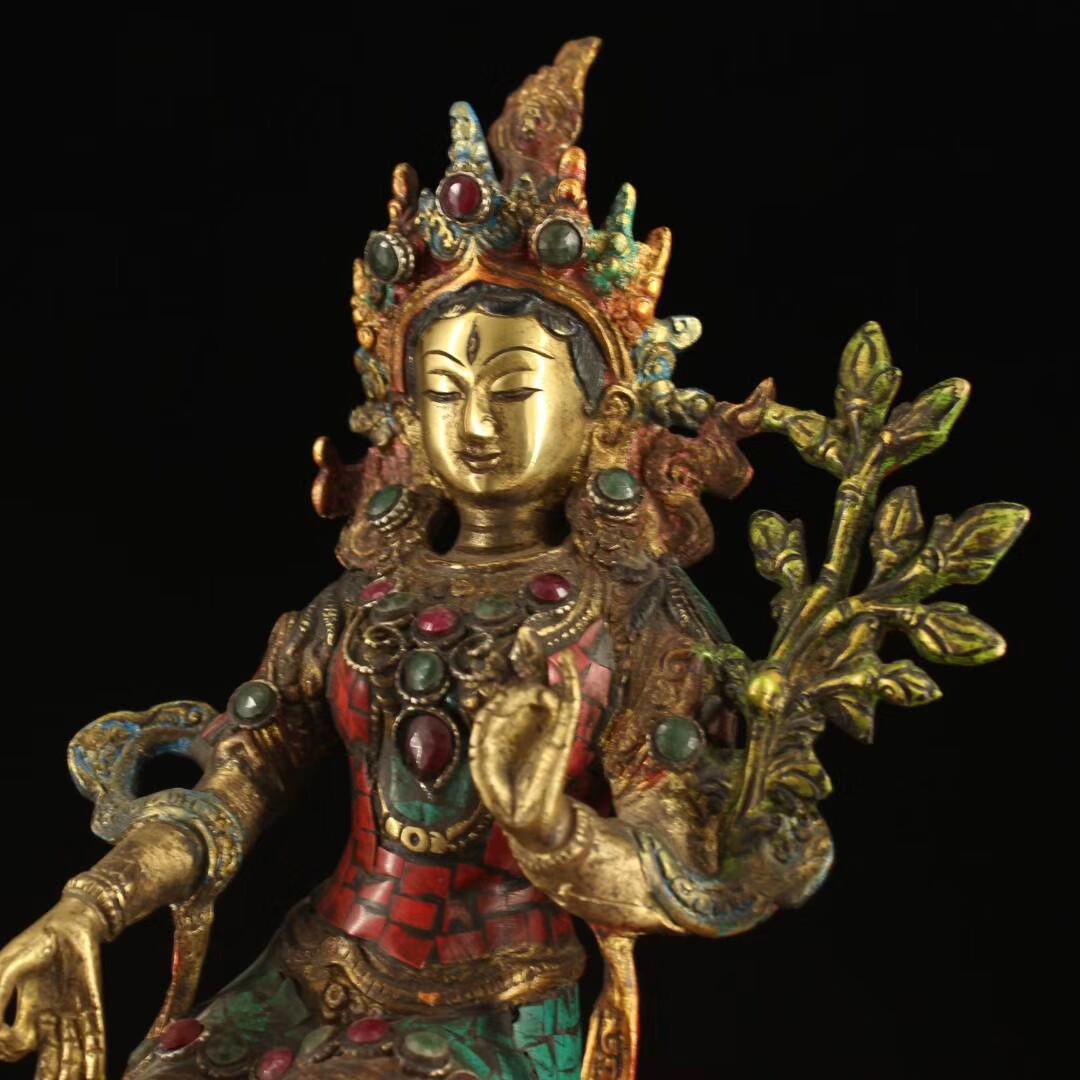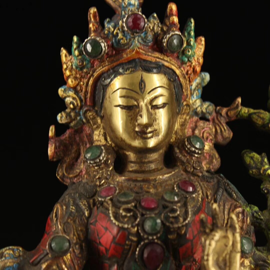 Palace Yaoxuan old pure copper hand to create a mosaic of gemstone color painting green mother
