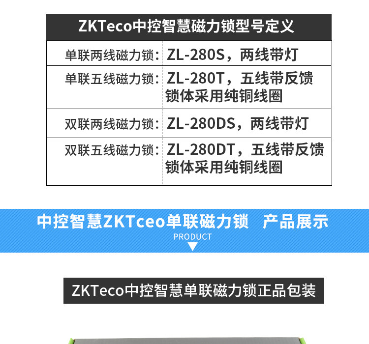 Single Door Two-Wire Magnetic Lock (ZL-280S) Copper Wire Single Door Five-Wire Magnetic Lock (ZL-280T) Double Door Two-Wire Magnetic Lock (ZL-280DS) Copper Wire Double Door Five-Wire Magnetic Lock (ZL-280DT) Central Control 180 Double Door Magnetic Lock Single Door Five-Wire AL-280LED Magnetic Lock Double Door Five-Wire AL-280D Magnetic Lock