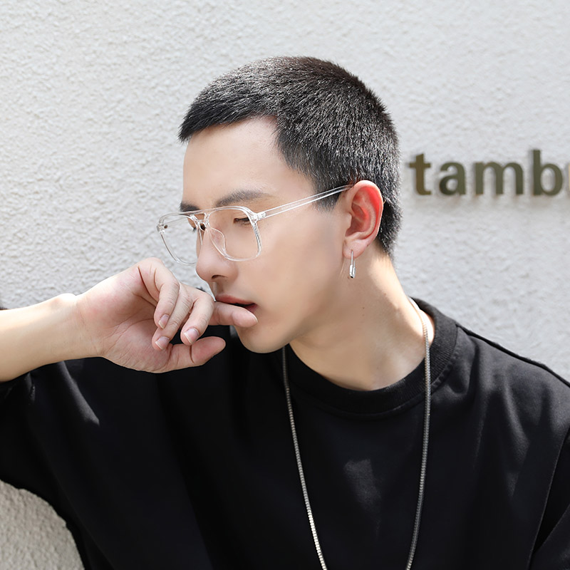 Transparent glasses male anti-blue-ray myopia glasses with thin face and small pair of double-beam large frame tide with near-visibility