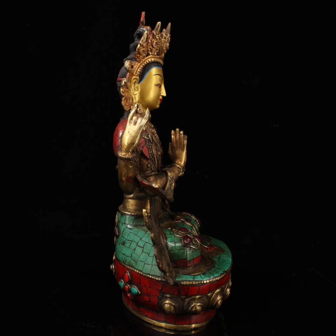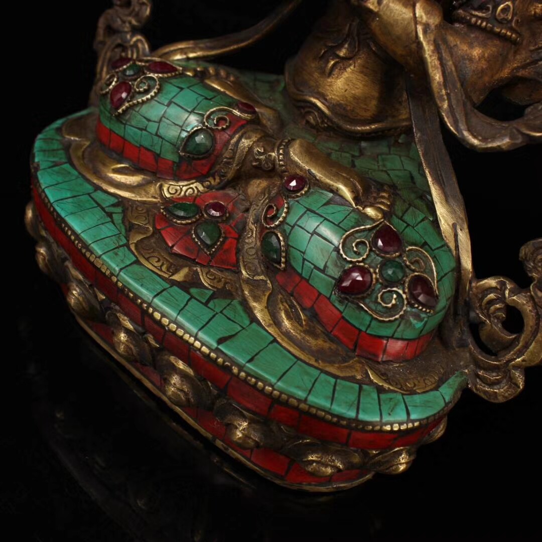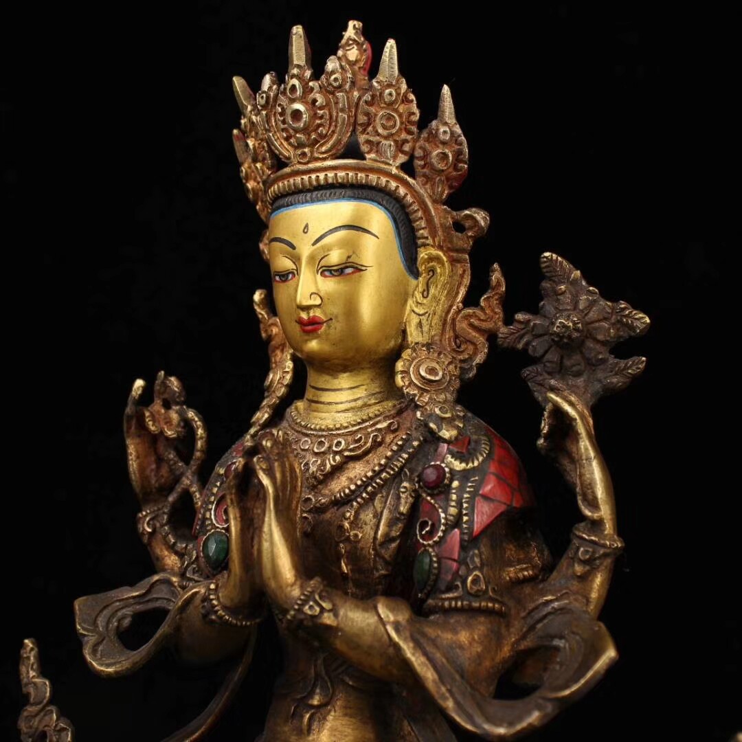 Painting of the pure copper inlaid gems of the ancient artist \ Gold \ Tsai Tibetan Religion 4 arm views \ one