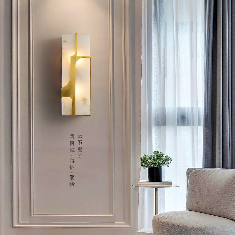 New Chinese marble all copper living room modern minimalist TV background wall lamps Chinese style bedroom bedside long wall lamp