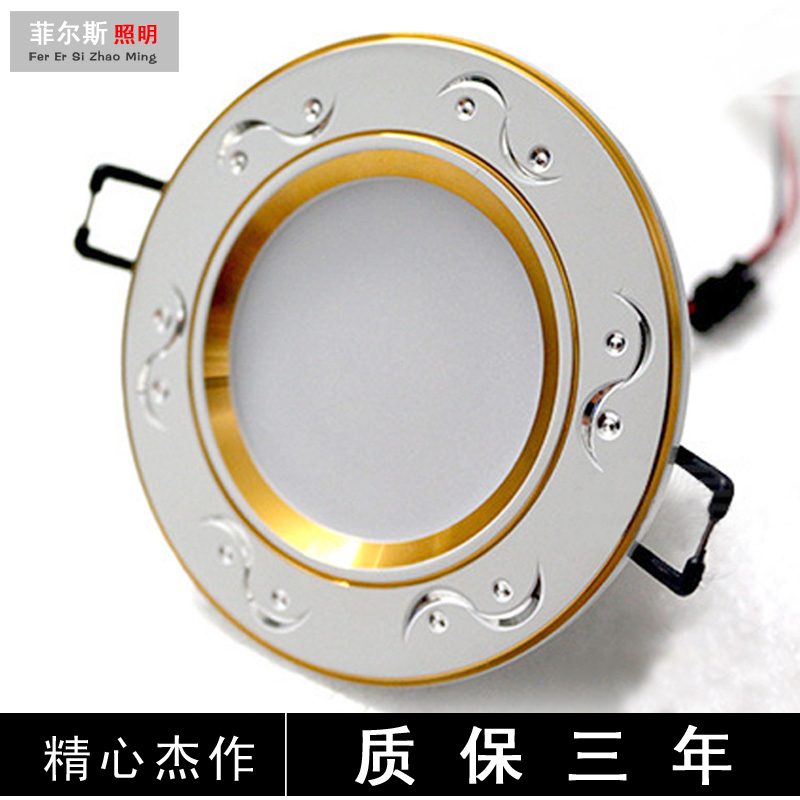 Tricolor led downlight 3W ceiling lamp embedded 7.5 opening hole home copper hole lamp 8 cm living room aisle