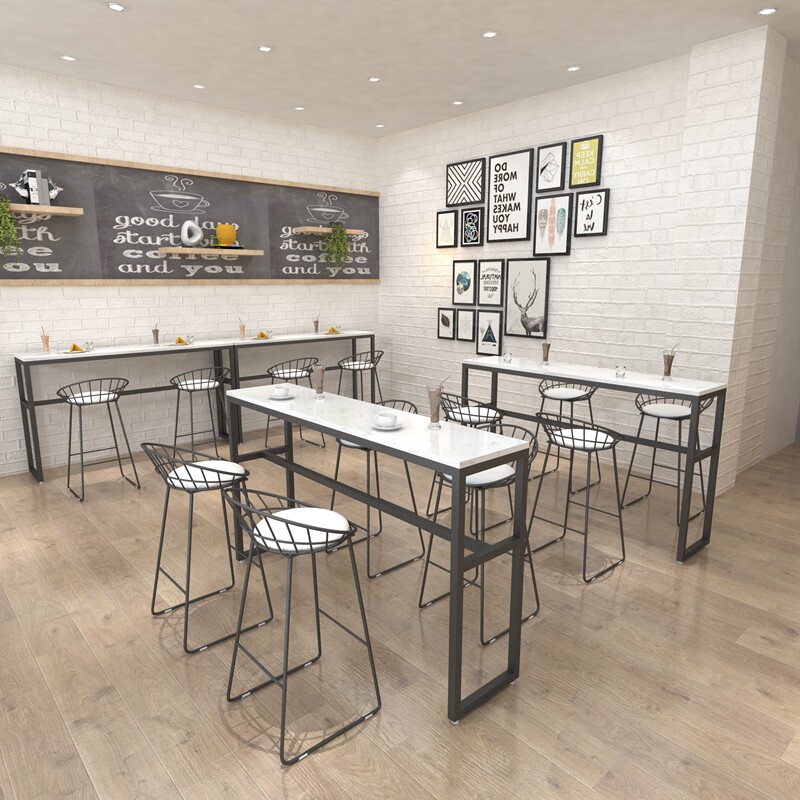 Nordic ins wind marble bar home coffee shop milk tea shop simple modern wrought iron solid wood high tables and chairs