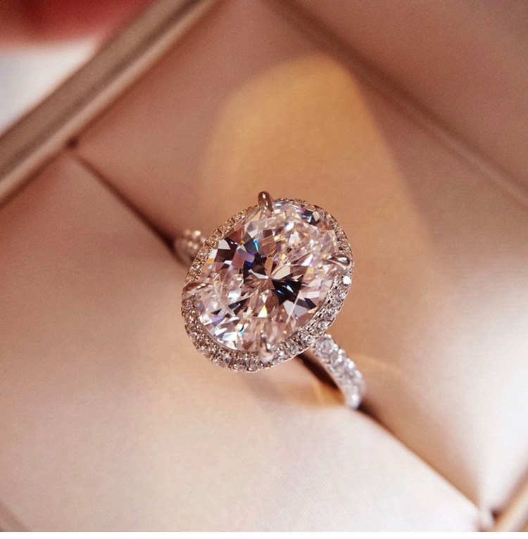 PT 950 Platinum simulation Mosanite super - large shine 2 carat pigeon egg elliptical luxury group drilling wedding ring girl