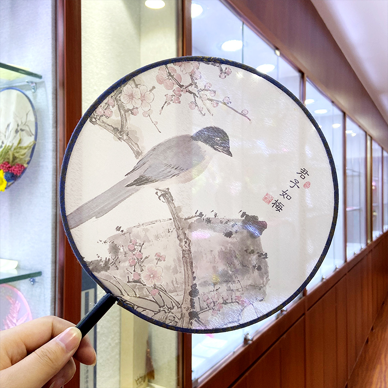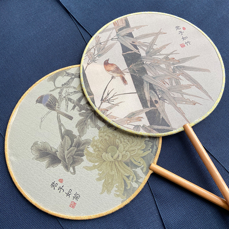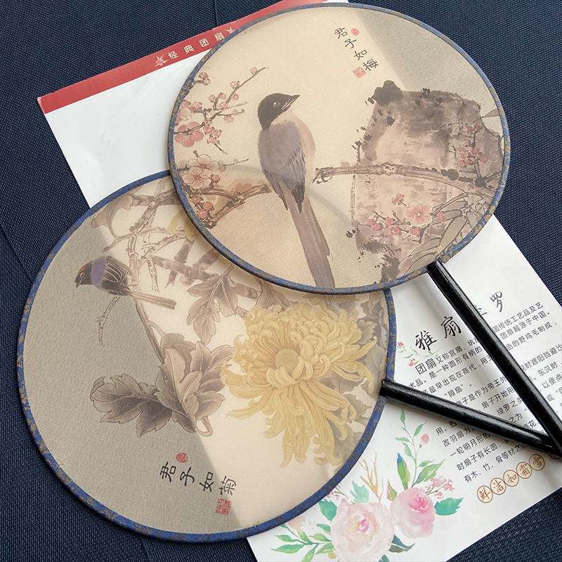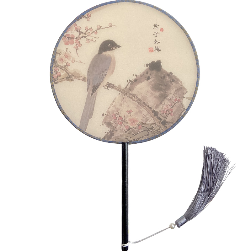 Four gentlemen Ancient style fan Hanfu dance double-sided fan Long handle tassel Classical female dance fan Chinese style round fan