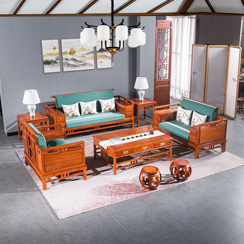 New Chinese sofa in six pieces (without a drum stool) New Chinese style sofa with eight sets (with a drum stool)
