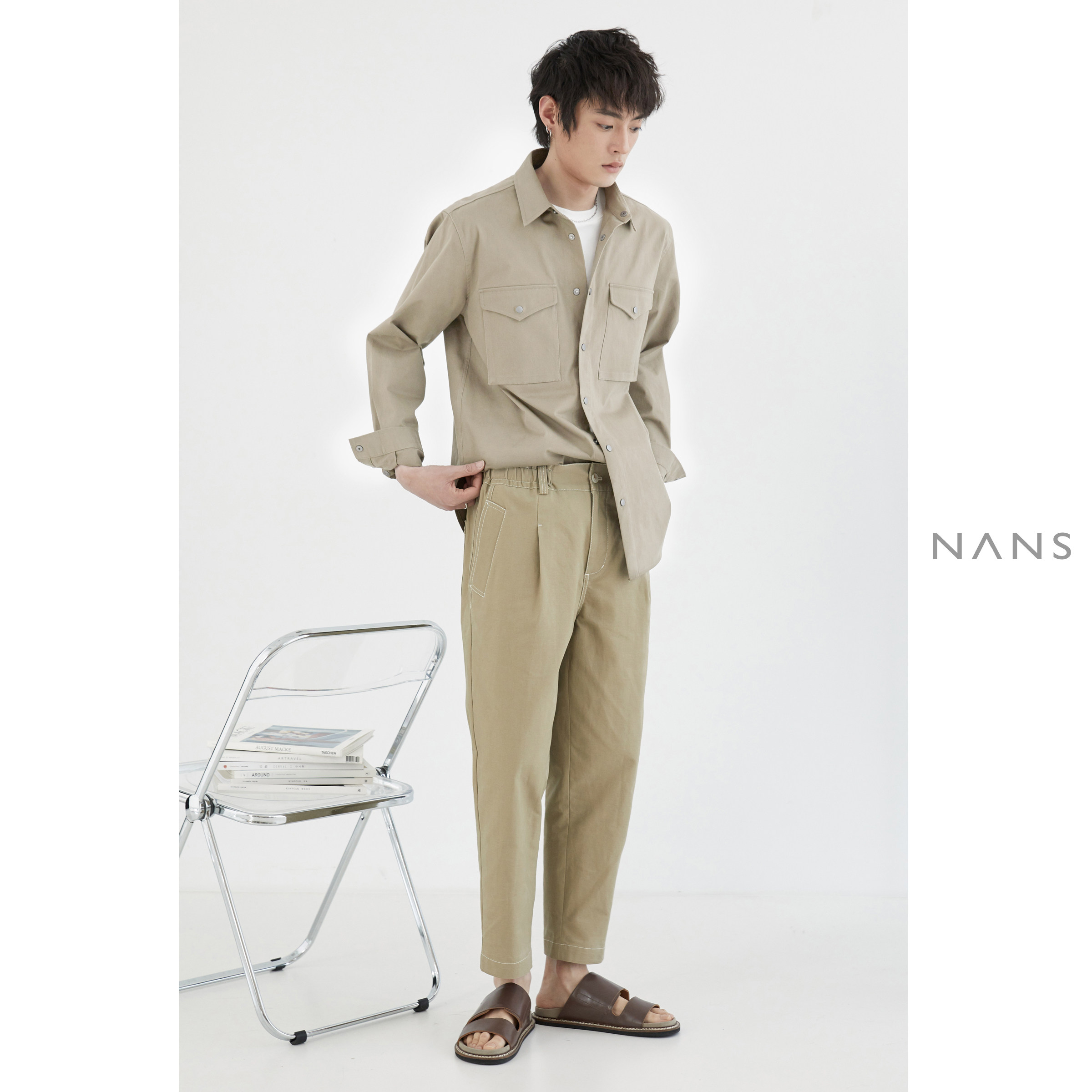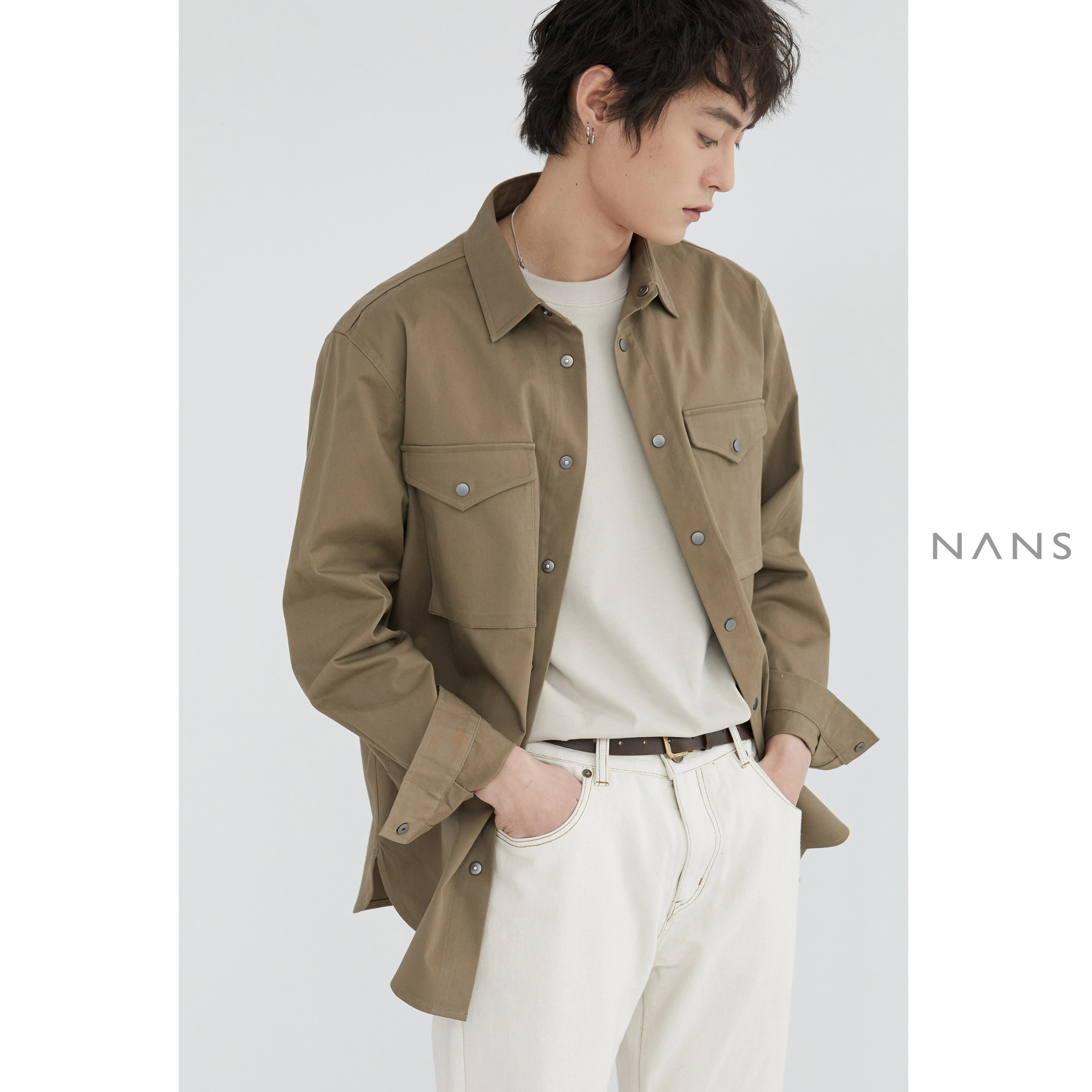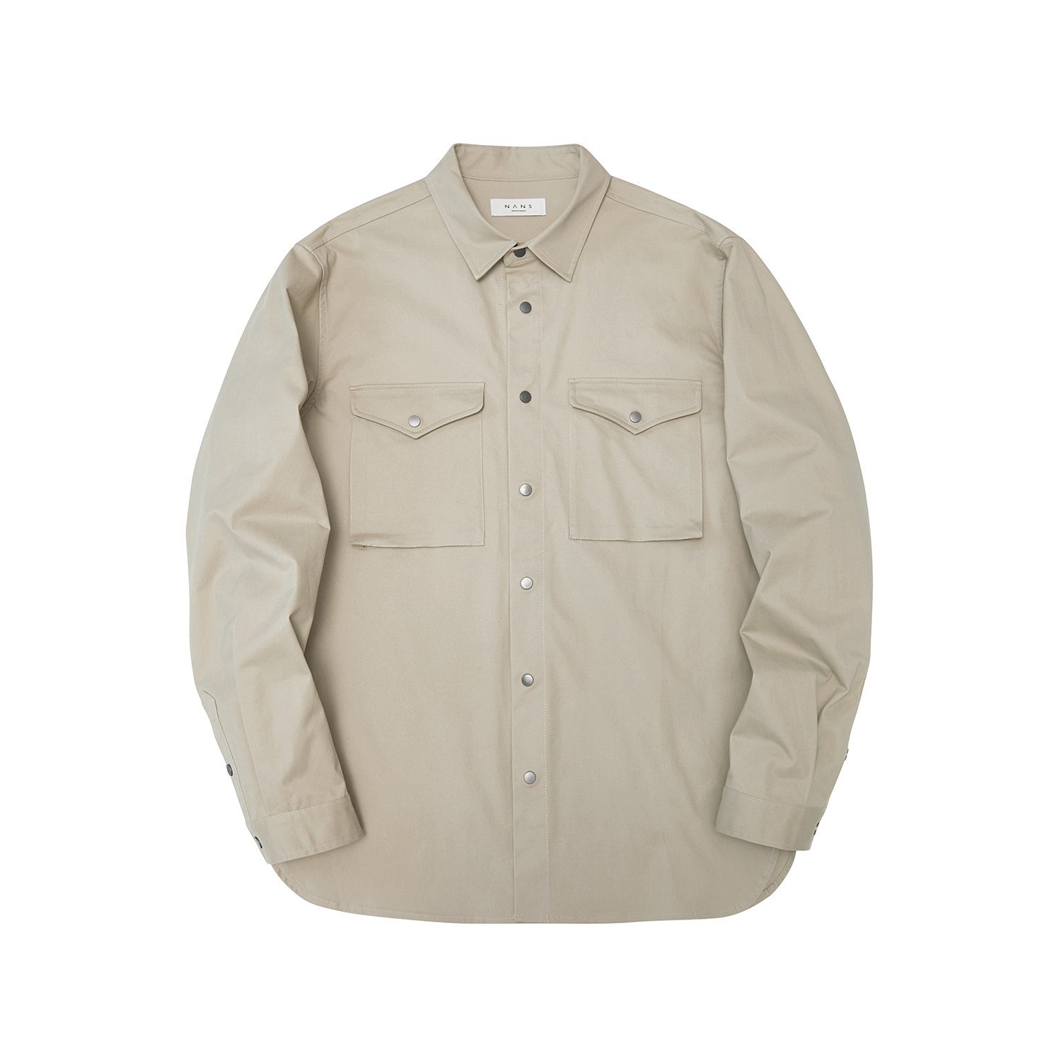 (limited-time 8 fold) Heavy grinding of wool sensation tooling wind large pocket long version shirt POCKET SHIRT