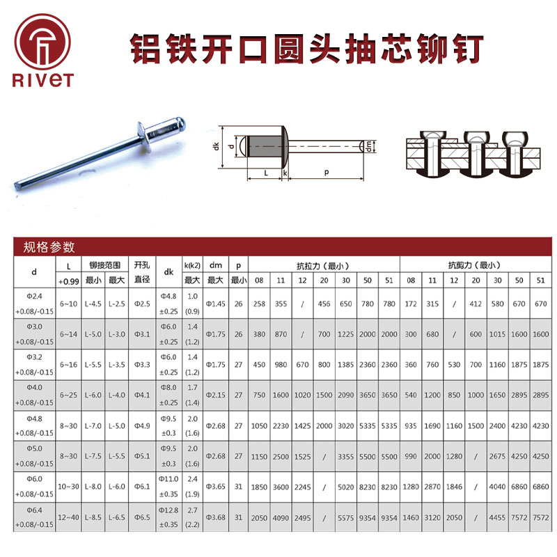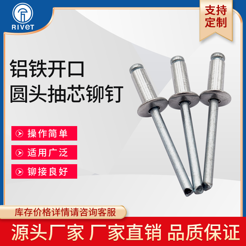 Yuan head aluminum iron material opening oblate head core rivet anchor rivet 4 8 GB12618 K1 decorative aluminum pull rivet