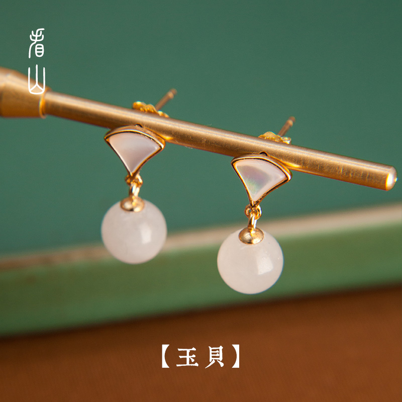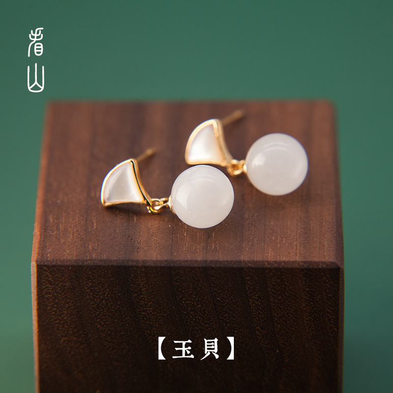 See Mountain) Yube) and Tian Yushi earrings decorated with female silver emerald mother Chinese style Song Dynasty wearing a qipao matching eardrop nail-Taobao