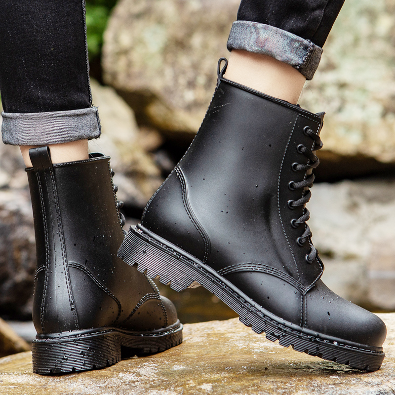 Couple Rain Shoes Men's Low Help Korean version Fashion Water Shoes Anti-slip Lace Rubber Shoes Woman Spring Summer Short Drum Set Shoes Waterproof Footwear Male
