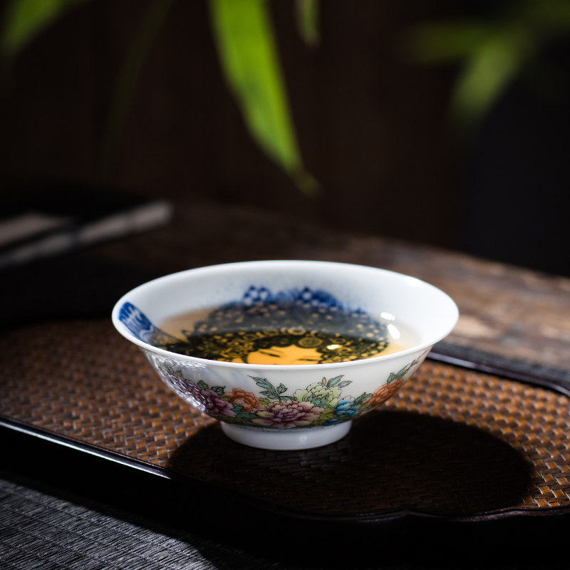 Xiaolian Jingdezhen tea set blue and white figure Huadan inner painting master Cup Pu'er tea cup enamel peony Cup