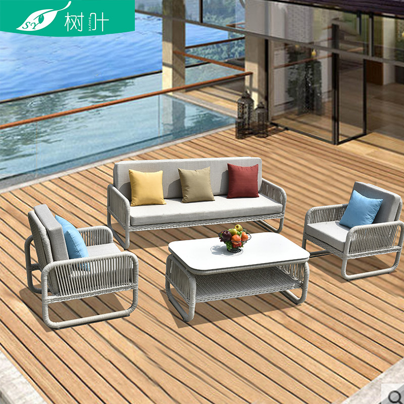 Single-person double-person three-person double-layer long coffee table Small square table 2 single-person 1 small square table 6-piece set combination