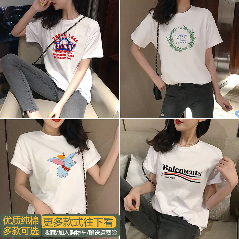 2022 Spring Summer New Korean Version Loose T-shirt Woman Short Sleeves Ins Tide Pure Cotton White Half Sleeve T-shirt Clothes