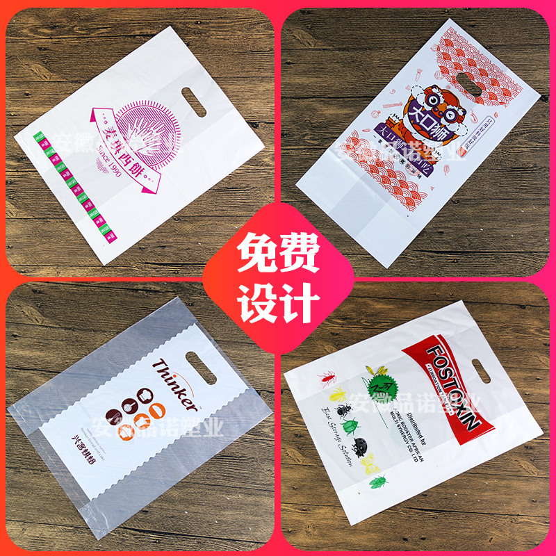 Hand plastic bag custom four finger bag buckle hand advertising bag custom baking bag graphic bag flat pocket printing logo