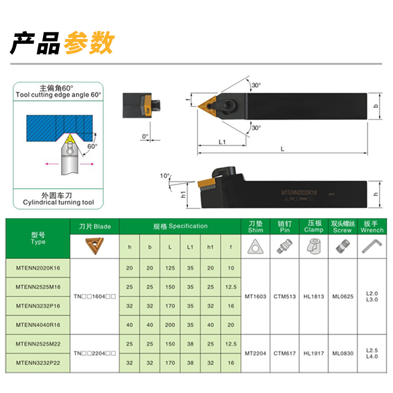 CNC tool holder outer circle MTENN1616H16 2020K16 2525M16 3232P16 Machining 60 degree thread
