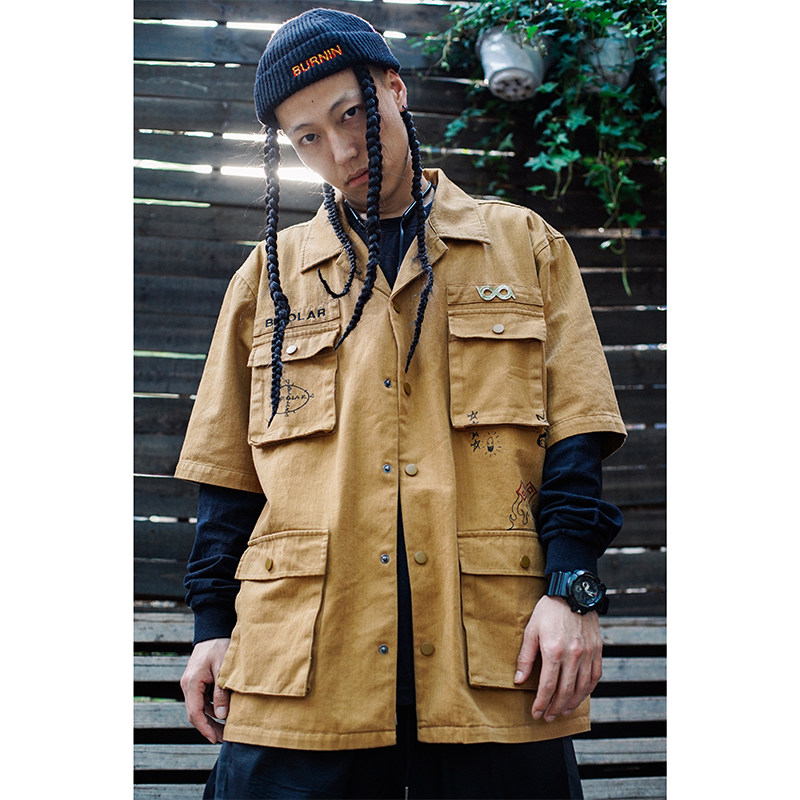 BIPOLAR SMILEY graffiti frock shirt National trend Hip hop street loose casual half sleeve short sleeve T-shirt