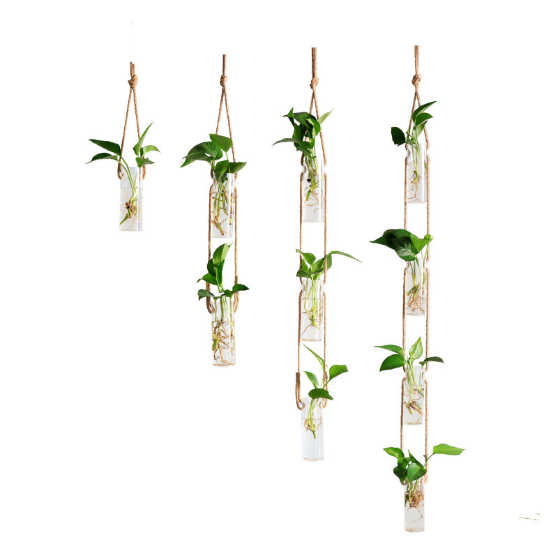 Creative hanging vase hanging bottle hydroponic flower device wall hanging flower pot hemp rope light luxury plant container gold Ge pastoral simplicity