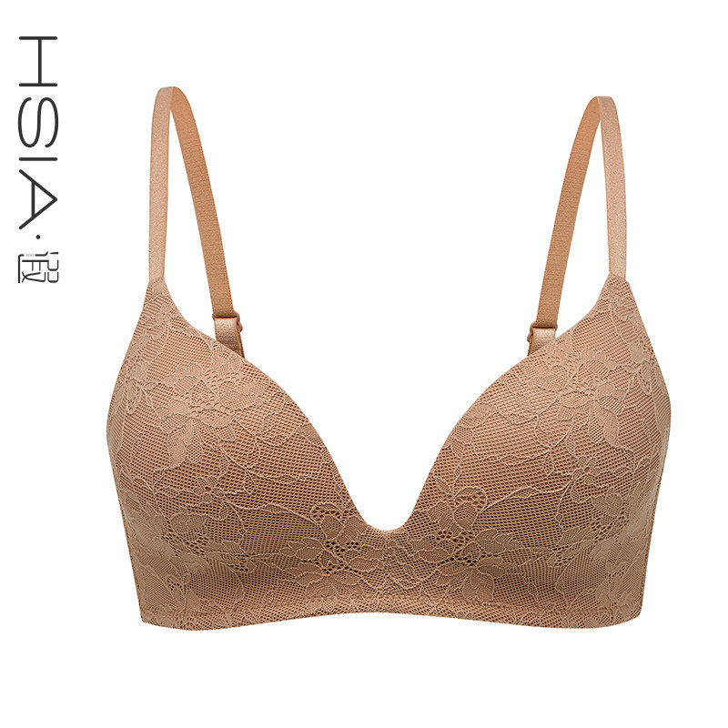 HSIA reverie lace bare-faced unretented lingerie women's small and medium-sized breasts a thin upper and lower thick gathered no steel ring bra