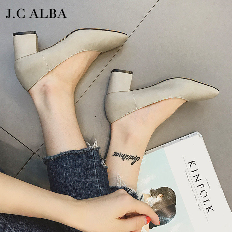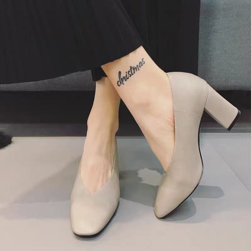 French soft leather high-heeled shoes 2022 autumn thick-heeled middle-heeled soft-soled grandma shoes women's retro fairy square-toed shoes women