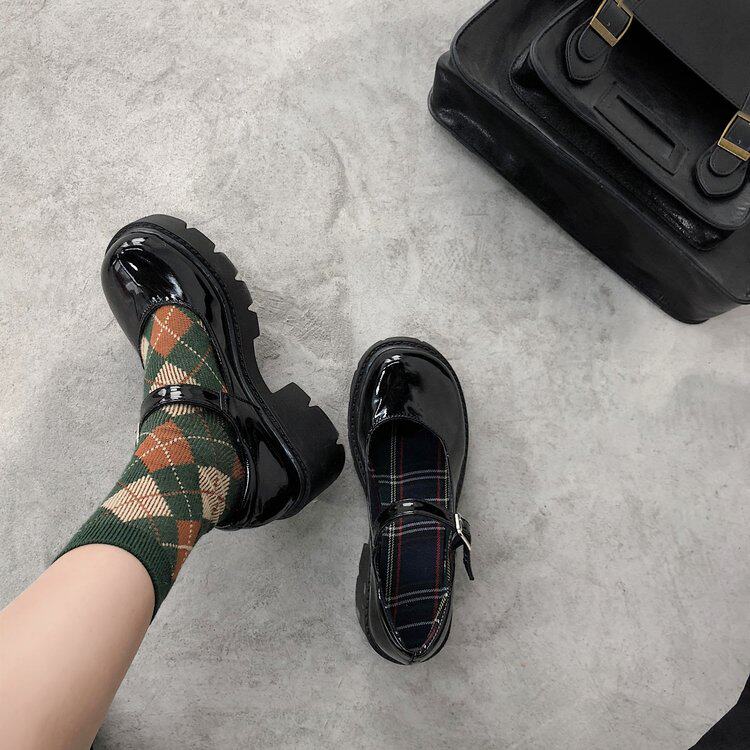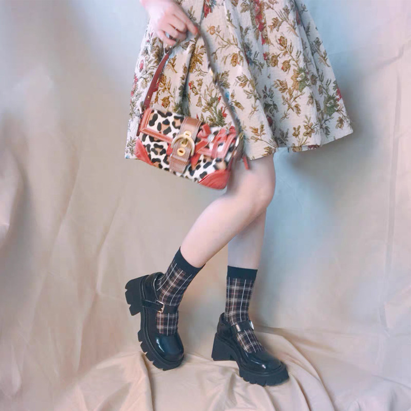 2022 new Japanese Mary Jane shoes jk shoes heightened thick bottom high heels black retro small leather shoes female British style