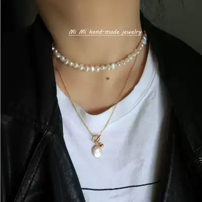 Baroque natural shaped pearl imported 14K gold choker necklace choker small red book net red