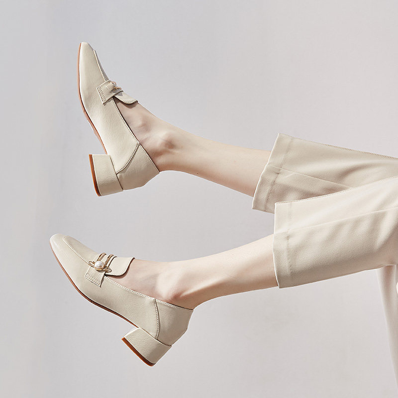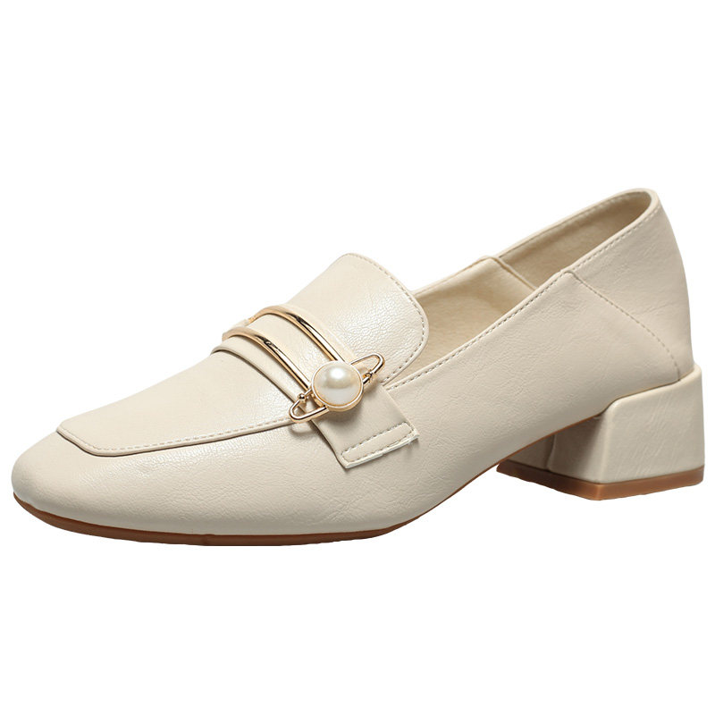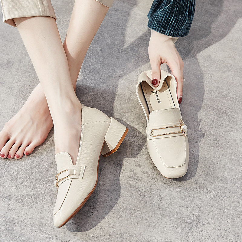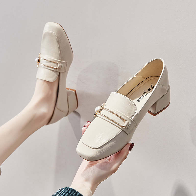 British small leather shoes women's 2022 spring new shoes all-match thick heel single shoes women's medium heel retro square toe loafer