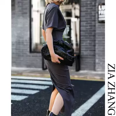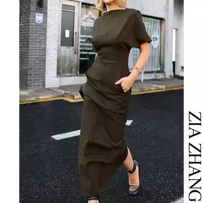 Z boss a word collar a piece of slim dress swallowtail long version X-shaped short sleeve dress women