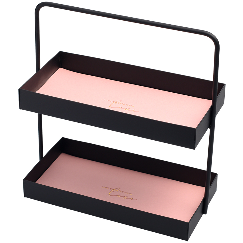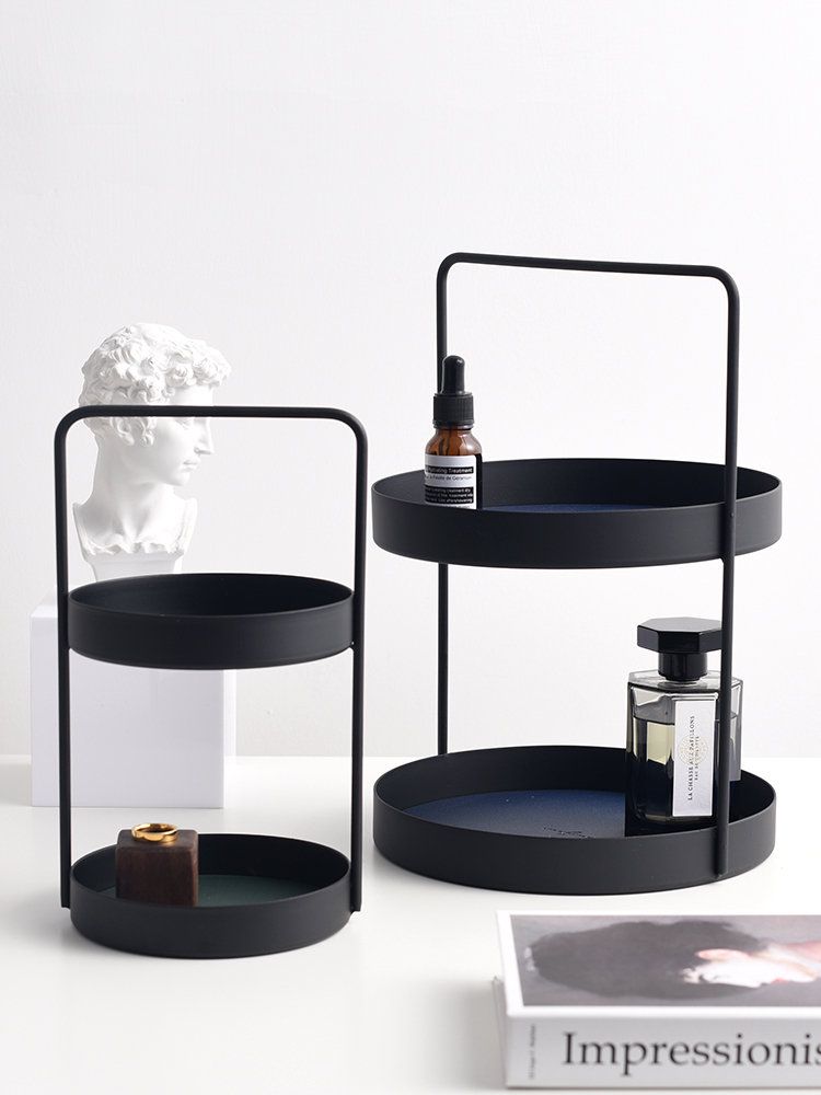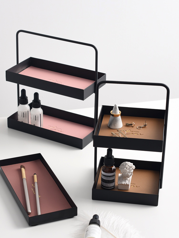 Xiaoxijia Nordic style ins Wrought iron leather double storage shelf Home decoration storage jewelry plate display rack