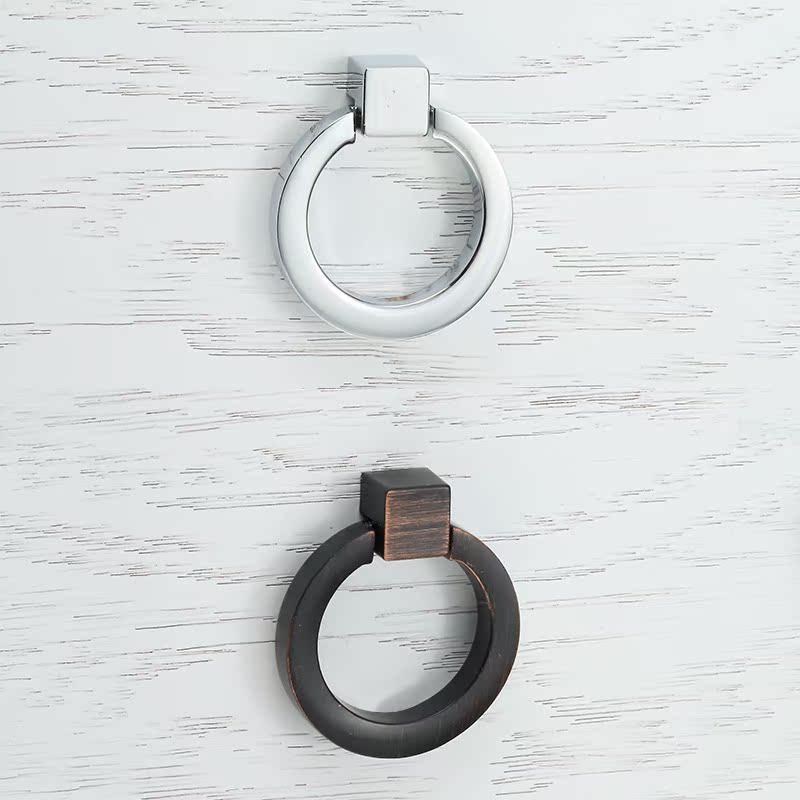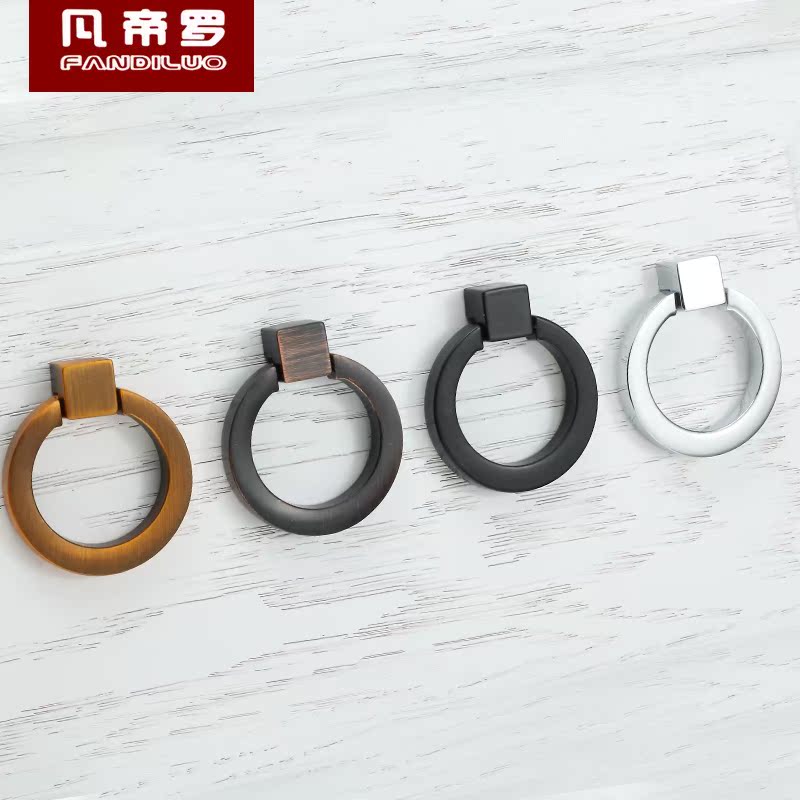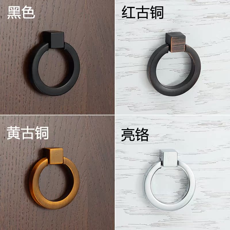 Imitation ancient wardrobe drawers Single-hole cirque handle modern minimalist invisible black pull-ring American cabinet door handle shoe cabinet
