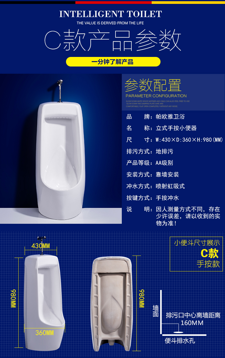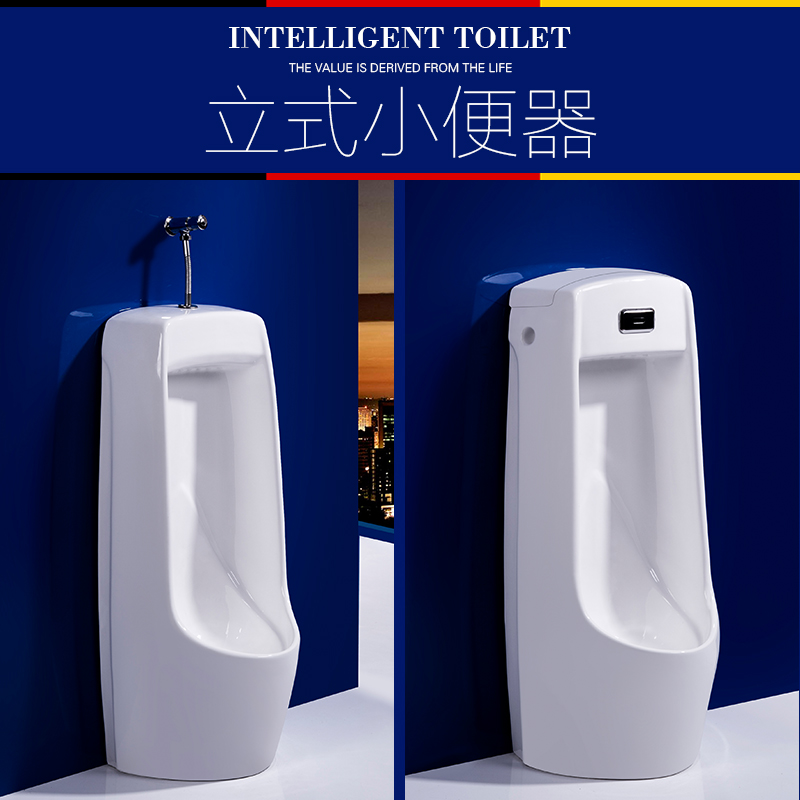 Floor-standing vertical hand-pressed urinal men's standing floor-mounted urinal home hotel engineering ceramic urinal