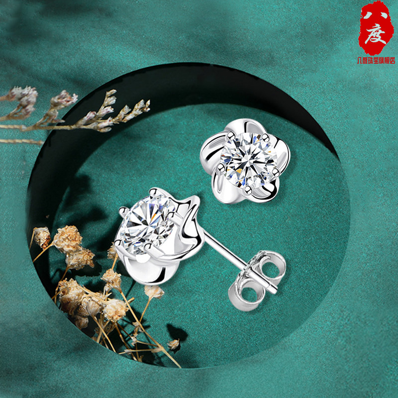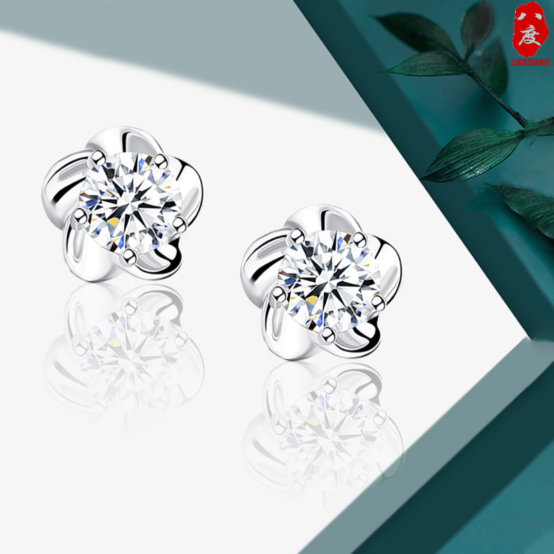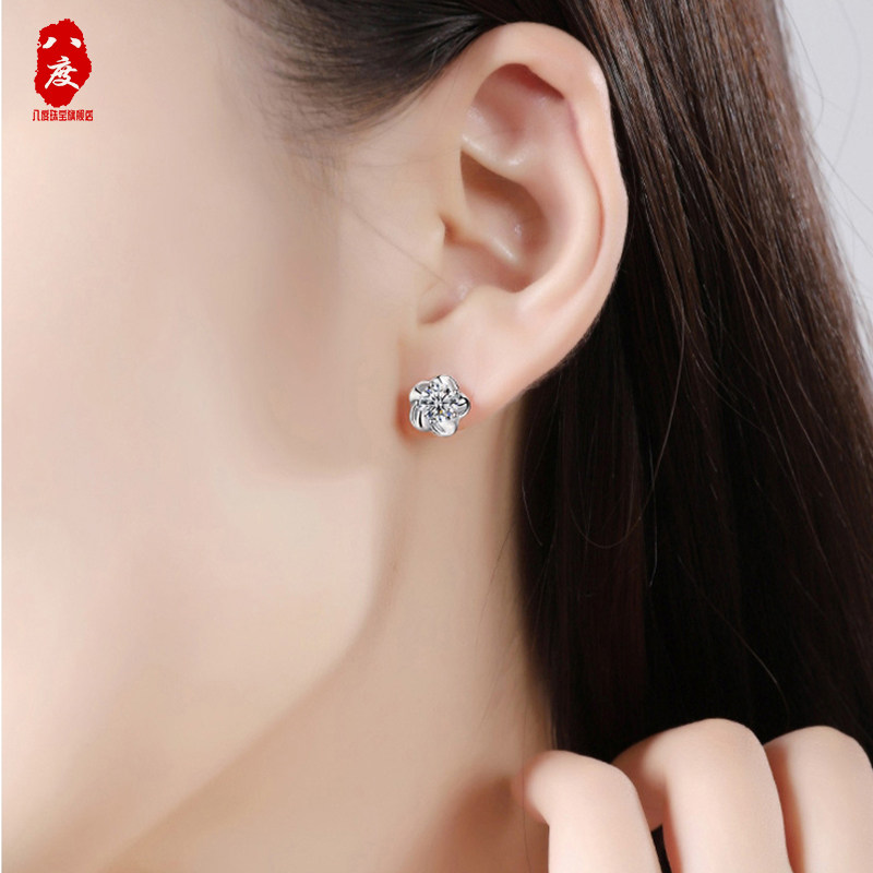 Octave Pt950 platinum stud earrings women 18k white gold plum earrings Moissanite diamond simple jewelry gift