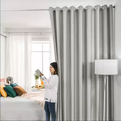 Door curtain partition window punch-free installation of windshield telescopic rod Household occlusion living room curtain cloth Room air conditioning Bedroom