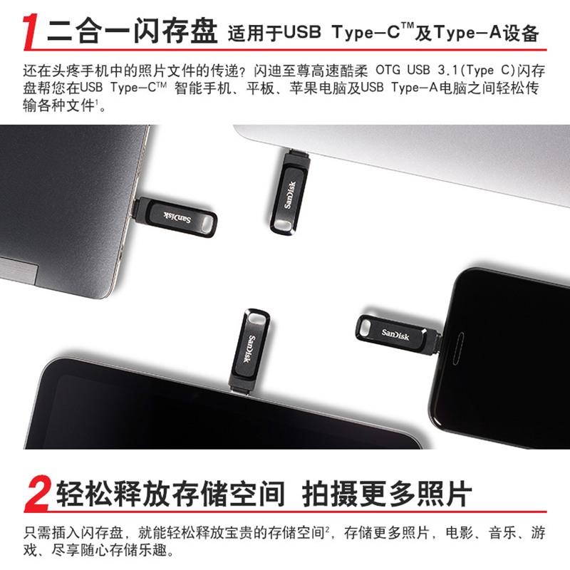 Sandisk SanDisk TypeC mobile phone U disk computer dual-use 64g Android U disk type-c memory expansion external USB stick high-speed OTG dual interface USB3.1 universal large-capacity encryption