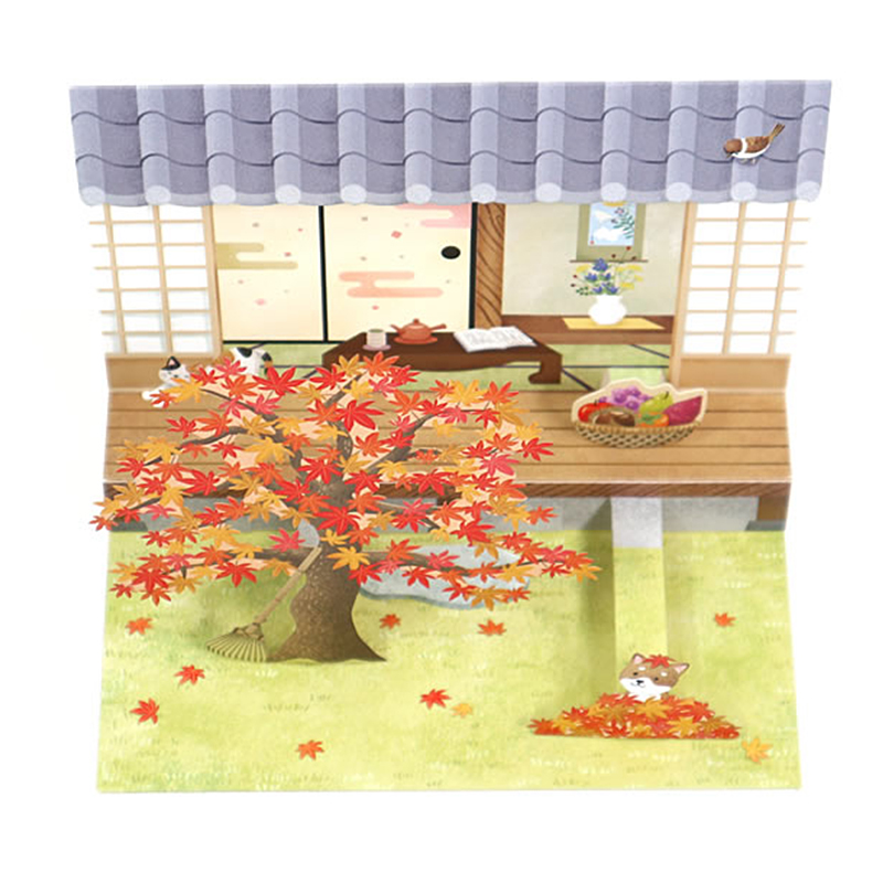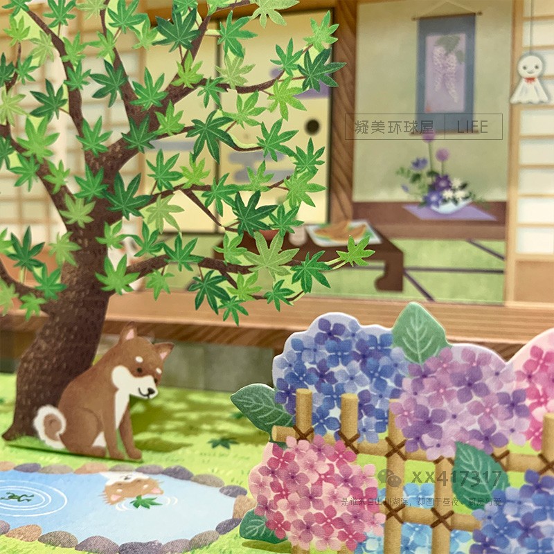 Japan New Spring Three-dimensional Greeting Card Hollowed-out Cherry Blossom Courtyard Cute Pooch Chai Dog Autumn Field Creative Mini Scene