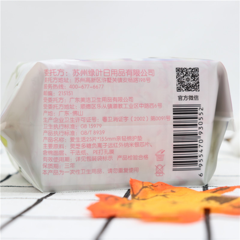 Green leaf love life pro light cotton pad sanitary napkin aunt towel negative ion ultra-thin antibacterial 25 pieces * 155mm new