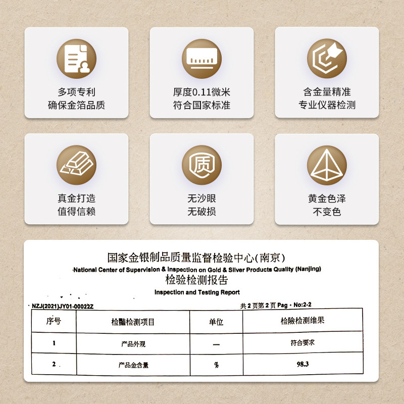 98% gold 2.75cm 4.3cm 10.9cm gold leaf