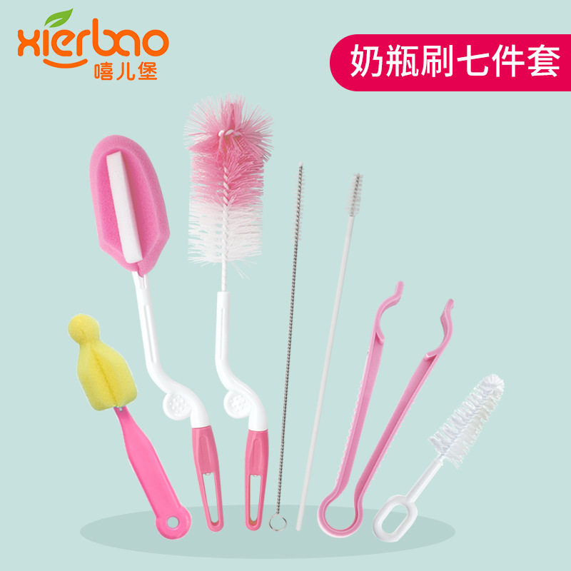 Bottle brush Cleaning brush set Baby 360 degree rotating bottle sponge brush 7-piece set bottle clip straw brush
