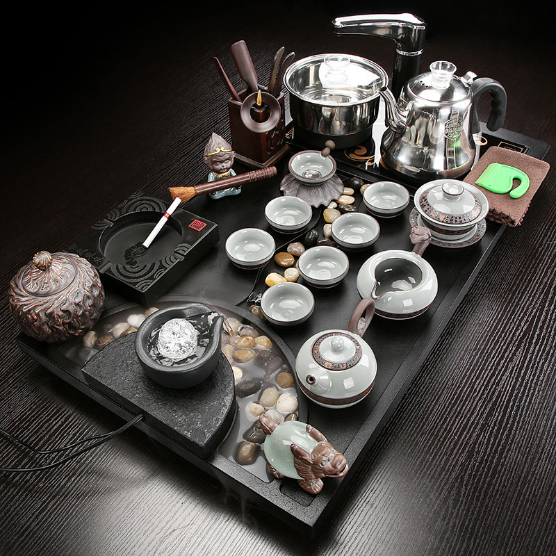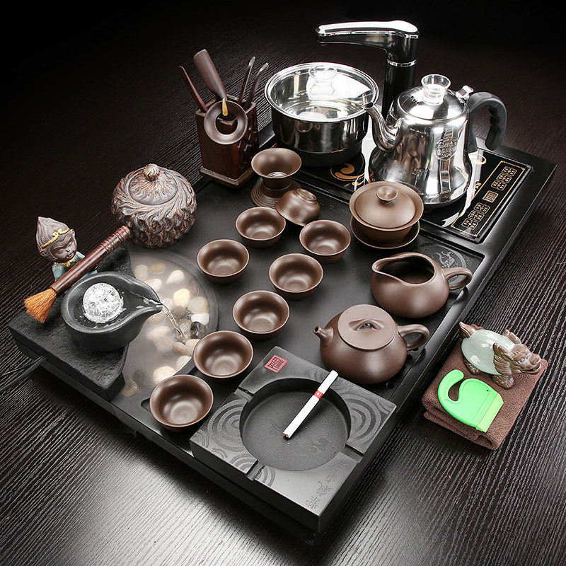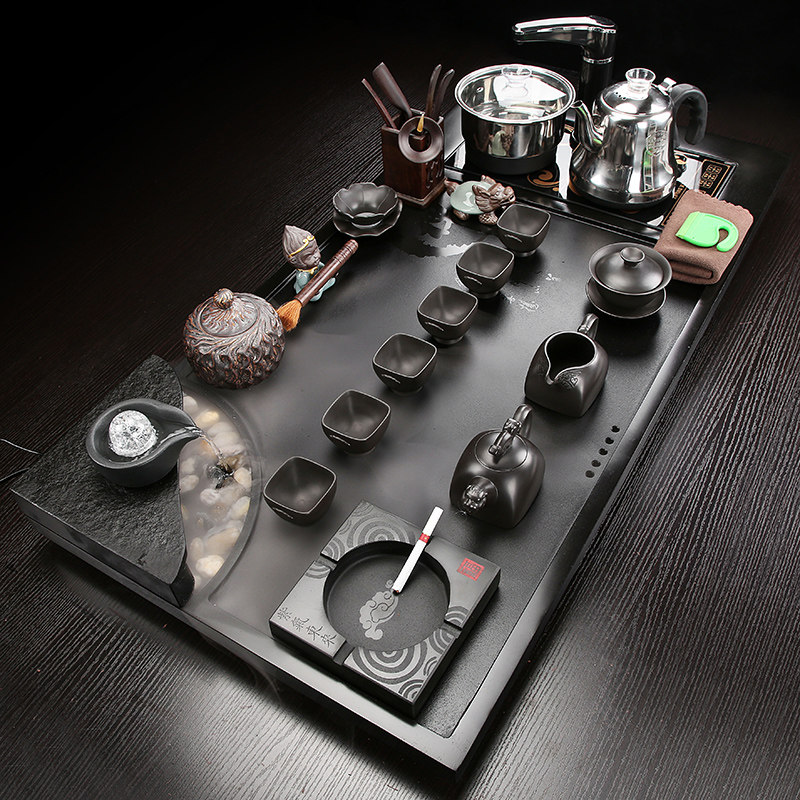 Atomized water Whole block Wu Jinshi tea tray Automatic tea set set Household large tea table Simple one tea sea